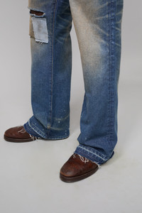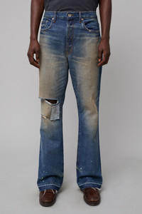 Relaxed bootcut fit with 5-pocket design. Features slightly distressed GD custom hardware, embroidered GD pin on coin pocket, debossed tan leather jacron, and released hem. Model: 6" wearing size 32 Artistic Details - Relaxed bootcut fit. - 5-pocket design. - GD custom hardware. - Debossed tan leather GALLERY DEPT. jacron on the back waistband. - Embroidered GD pin detailing on the coin pocket. - Released hem. Made in USA Material: 100% Cotton
