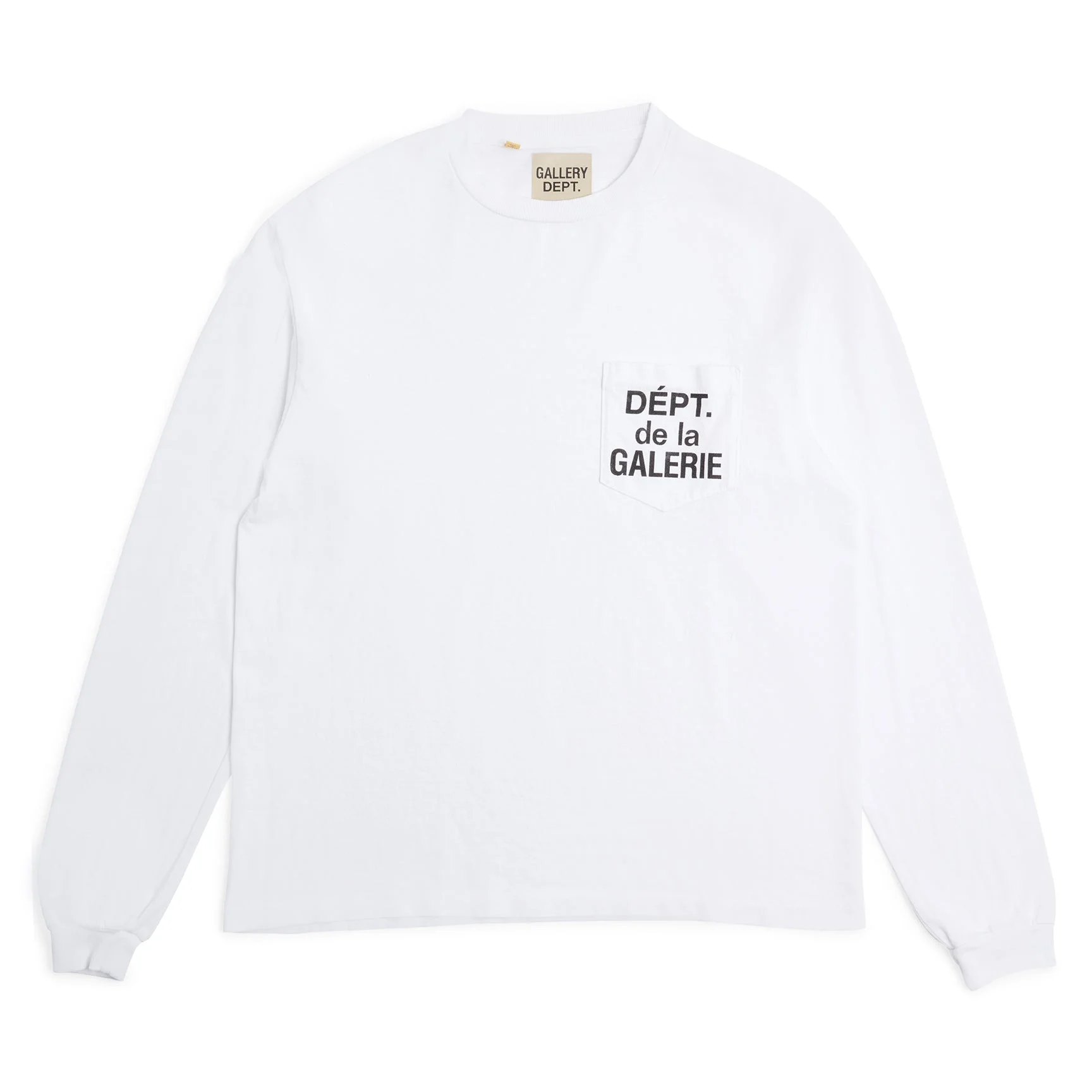 Relaxed silhouette with our signature FRENCH logotype printed on the front pocket of the garment. Model: 6'3" wearing size XL Artistic Details - Long sleeve silhouette. - Relaxed fit. - Signature FRENCH logotype printed on the front pocket. - Our artistic techniques and aging processes may result in naturally distressed fabric, small holes, and imperfections. Made in USA Material: 100% Cotton