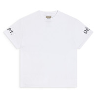 Relaxed short sleeve tee featuring the FRENCH logotype on the sleeves. Each piece undergoes our patent wash process for unique fading across logos and graphics. Artistic Details - Short sleeve tee. - Relaxed fit. - FRENCH logotype on the sleeves. - Shrunken FRENCH logotype at the neck. - Features our patent wash process that uses unique fading techniques for each piece, inclusive of logos and graphics. Made in USA Material: 100% Cotton