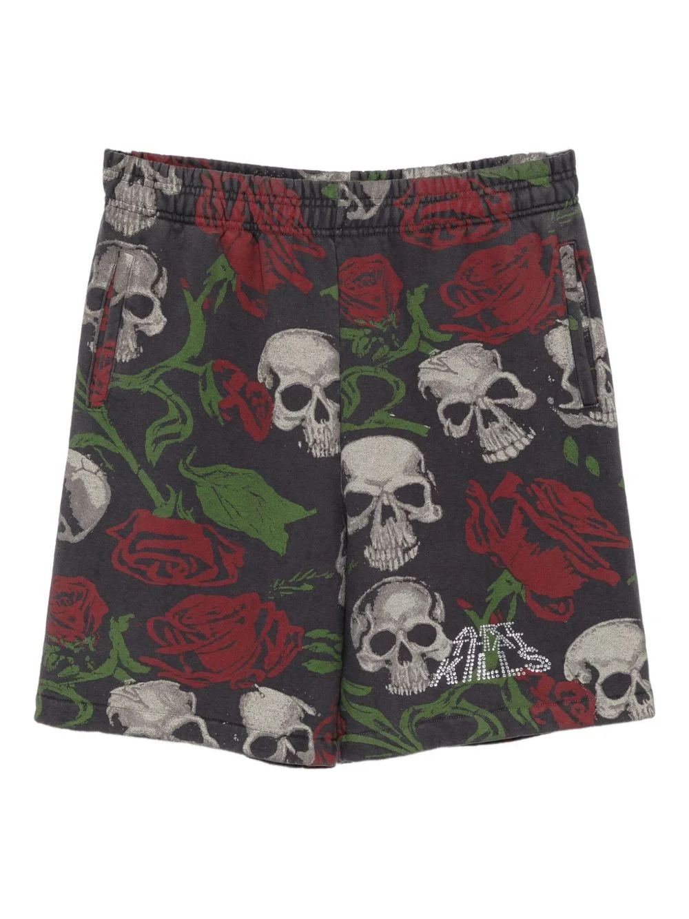 Edski shorts Highlights - Steel grey - Elasticated drawstring waistband - Floral print - Skull print Made in United States Composition Cotton 100% SIZE & FIT Model measurements Height 6 ft 2 in(1.87 m) Bust/Chest 33.07 in(84 cm) Hips 35.43 in(90 cm) Waist 26.77 in(68 cm) FittingInformation Designed for a straight-leg fit, offering an unrestricted and comfortable fit over the leg Adjust this piece’s waistband to your preference using the drawstring Made from a midweight non-stretch fabric, this piece offers minimal elasticity when worn Washing instructions Dry Clean Only