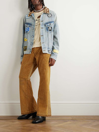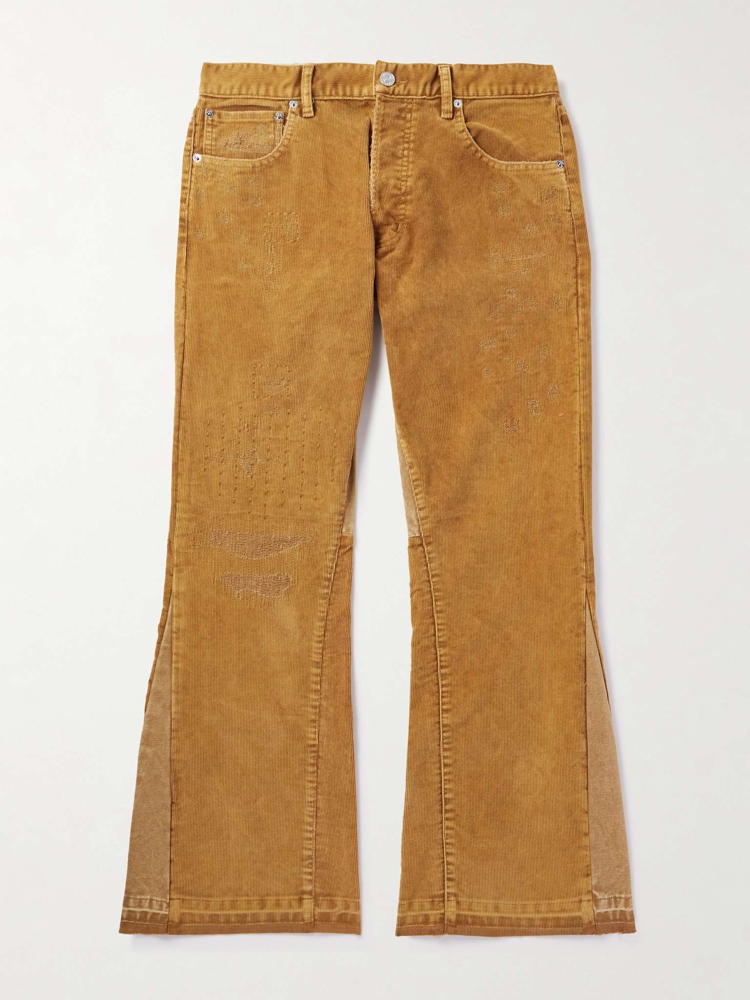 Flared Distressed Cotton-Corduroy and Canvas Trousers