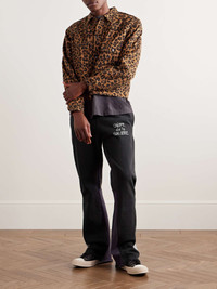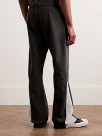 Flared Denim-Panelled Logo-Print Cotton-Jersey Sweatpants