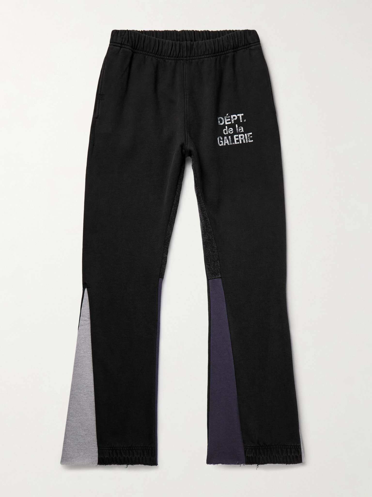 Gallery Dept. founder Josue Thomas' artistic background shines through in his collections. These flared sweatpants are made from panels of cotton-jersey with contrasting denim along the inseam. Size & Fit - Fits true to size. Take your normal size - Relaxed cut; flared at the hem, low-crotch style - Internal drawstring at the waist - Mid-weight, slightly stretchy fabric - Model is shown wearing a M - Model measures: waist size 32, height 6'1"/ 185cm Details & Care - Navy, black and grey melange cotton-jersey, black denim - 100% cotton - Dry clean