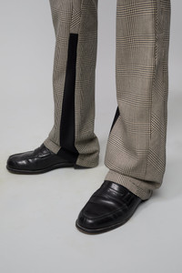 We honor the craft, but we refuse to be confined by it. Each suit is a study in contrasts: precision and freedom, tradition and disruption. Each piece is crafted in Italy with the expertise of master ateliers. Each piece begins with the structure of classic tailoring, evolving through a unique process of deconstruction and transformation. The result: a suit that embodies the discipline of craft with the soul of contemporary art. Artistic Details - Flared dress-pants with tailored silhouette. - Houndstooth pattern. - Side and back welt pockets. - GALLERY DEPT. tag above the right back pocket. - Inner 'art on display' patch along waistband. - Contrast black inserts at the inner leg openings. - Dry clean only. Made in Italy Material: 95% Virgin Wool / 5% Acrylic