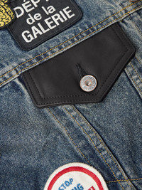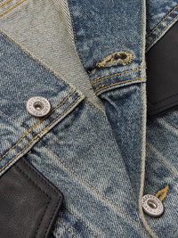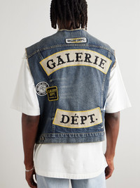 Gallery Dept.'s 'Midnight' vest looks like a well-loved favourite, thanks to its collection of appliqued patches and raw edges. It's cut for a relaxed fit from faded denim and trimmed with leather along the buttoned flap pockets. Wear yours layered over one of the brand's T-shirts. Size & Fit - Model wears a size larger to achieve a looser fit - Mid-weight, non-stretchy fabric - Model is shown wearing a L - Model measures: chest 38"/ 96cm, height 6'0"/ 183cm Details & Care - Blue denim, black leather - Button fastenings - 100% cotton; trim: 100% leather (Cow) - Dry clean