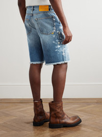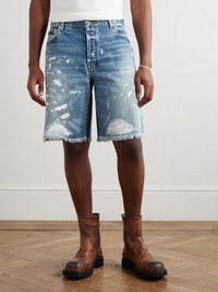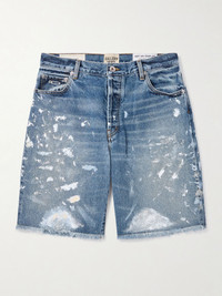 Ventura Straight-Leg Distressed Paint-Splattered Denim Shorts Blue