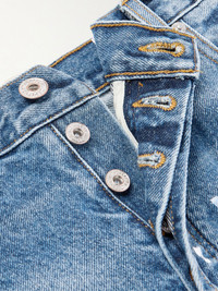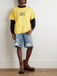 Gallery Dept.'s 'Ventura' shorts are hand-distressed with paint splatters for a lived-in feel, so no two are exactly alike. Embroidered with a signature safety pin logo at the front pocket, they're made from blue denim and have a relaxed, straight cut with frayed hems. Size & Fit - Fits true to size. Take your normal size - Relaxed-straight leg, low-crotch style - Mid-weight, non-stretchy denim - Model is shown wearing a 32 - Model measures: waist size 32, height 6'0"/ 183cm Details & Care - Tonal-blue and white denim - Button fastenings - 100% cotton - Dry clean