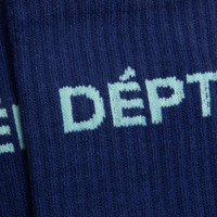 The Gallery Dept. Socks in Navy are made from cotton, designed for comfort with a soft mid-calf length. Each pair features a woven DEPT. logo on both sides, adding a stylish touch to these essential accessories. - 100% Cotton - Soft mid-calf socks - Woven DEPT. logo on each side - Style No: FDS-90081-NAVY