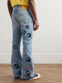 Before it became a brand, Gallery Dept. was a creative space in downtown Los Angeles, where founder Josue Thomas would collaborate with friends and family. Designed with the same ethos as the early years, these jeans are made from distressed denim and appliqued with clusters of 'G'-shaped patches along the front and back. They're layered with seams from pre-worn pairs and have wide, flared hems. Size & Fit - Fits true to size. Take your normal size - Relaxed cut; flared at the hem, mid-rise style - Mid-weight, non-stretchy denim - Model is shown wearing a 32 - Model measures: waist size 32, height 6'0"/ 183cm Details & Care - Blue denim - Button fastenings - 100% cotton - Dry clean