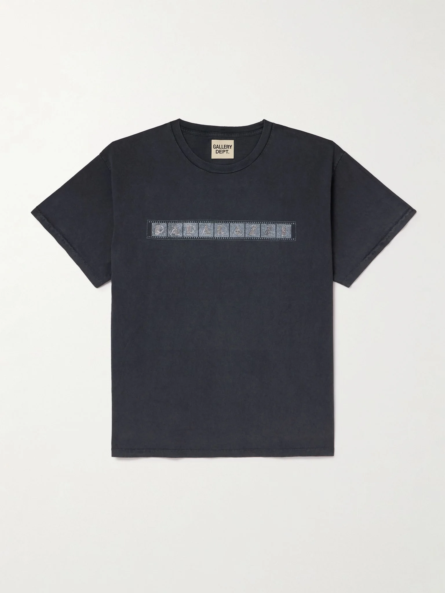 Gallery Dept.'s T-shirt evokes cool Y2K styles. Made from cotton-jersey, it spells out 'Paparazzi' in crystal-encrusted lettering and features a glittered logo on the reverse. Size & Fit - Fits true to size. Take your normal size - Designed for a boxy fit - Mid-weight, stretchy fabric - Model is shown wearing a M - Model measures: chest 38"/ 96cm, height 6'3"/ 191cm Details & Care - Black and grey cotton-jersey - 100% cotton - Dry clean - Designer colour: Vintage Black