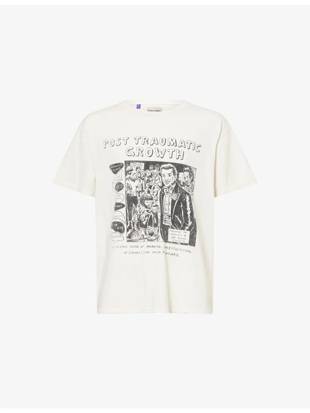 PRODUCT DETAILS - GALLERY DEPT. cotton-jersey T-shirt - 100% cotton - Regular fit, ribbed crewneck, short sleeves, text and graphic print at front, glitter brand print at back, distressed trims - Dry clean only - Made in USA - Model is 6ft 2in/1.88m and wears a size medium - Lightweight, stretchy Ref: R04563696