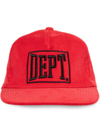 crimson/black cotton corduroy flat peak embroidered logo to the front fabric-covered button at the crown eyelet vents adjustable strap to the rear Size & Fit Model Measurements: Bust: 0cm Height: 0cm Hips: 0cm Waist: 0cm Fabric and Care Designer Style ID: DCH90013 Designer Colour: RED Composition: Cotton 100% Washing instructions: Read Manufacturer Guidelines Made in United States