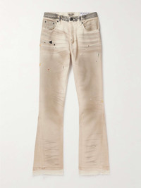 Headed by contemporary artist Josué Thomas, Gallery Dept. designs with a rebellious and artistic spirit. These 'Hollywood' jeans are made from denim that's faded, distressed and splashed with paint for a well-loved feel. They flare out at the hems, which are frayed for that unfinished finish. Size & Fit - Model wears a size larger to achieve a looser fit - Relaxed cut; flared at the hem - Mid-rise style - Mid-weight, non-stretchy fabric - Model is shown wearing a 32 - Model measures: waist size 32, height 6'0"/ 183cm Details & Care - Multicoloured denim - Button fastenings - 100% cotton - Dry clean only - Designer colour: Natural