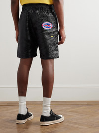 Boxing Straight-Leg Appliquéd Satin-Jacquard Shorts Black
