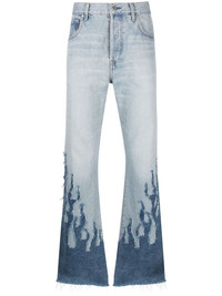 LA Blvd flared jeans Arriving in a classic light blue hue, these flared jeans by GALLERY DEPT showcase the brand’s denim expertise. The pair sits at a mid-rise and falls into frayed flared hems which are enhanced with tone-on-tone flame appliques. Highlights - Light blue - Cotton - Mid-rise - Front button fastening - Belt loops - Classic five pockets - Logo patch to the rear - Flame applique at hems - Slight flare Imported Composition Cotton 100% SIZE & FIT Model measurements Height 6 ft 0 in(1.84 m) Bust/Chest 35.82 in(91 cm) Hips 37 in(94 cm) Waist 28.34 in(72 cm)