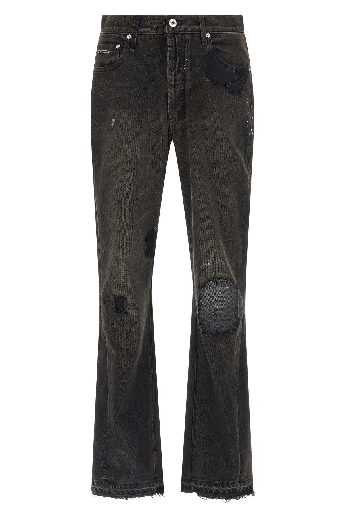 cod. LAOG52FBLACK 'La Og Flare' cotton denim jeans with reinforced worn effect, hand-painted stains, flared leg, brooch embroidery and front button closure, five pockets, back logo tag, frayed leg bottom. Color: Black Size & Fit: Slim fit Composition: 100% cotton Made in: United States