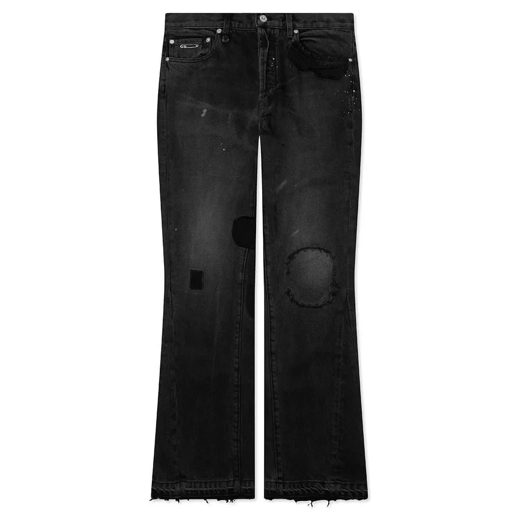 Introducing the LA OG Flare Pant from Gallery Dept. Constructed from cotton, these flare pants features a five-pocket design and button-fly. Reinforced rips and darning makes each pair unique, while hand-painted details and a released hem enhances the worn-in feel. A signature leather jacron completes the look. - 100% Cotton - Slim fit with flare leg - 5-pocket design - Button-fly - Reinforced rips and darning - Hand-painted details - Released hems - Leather Gallery Dept. jacron - Style No: LA-OG52-F-BLCK