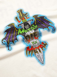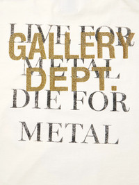 Gallery Dept.'s T-shirt is designed to mirror merch from iconic tours of the past. Cut from cotton-jersey in a boxy '90s-inspired fit, it's printed with 'Live for Metal' artwork featuring a dagger and bat wings. The back has the label's glittered branding with 'Die For Metal' written beneath it. Size & Fit - Fits true to size. Take your normal size - Designed for a boxy fit - Mid-weight, stretchy fabric - Model is shown wearing a M - Model measures: chest 38"/ 96cm, height 6'3"/ 191cm Details & Care - Multicoloured cotton-jersey - 100% cotton - Dry clean - Designer colour: Archival White