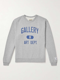 Founded in 2018 by artist Josué Thomas, Gallery Dept. is known for re-purposing and re-imagining vintage garments - this sweatshirt is inspired by classic collegiate attire. Designed and finished in LA, it's made from loopback cotton-jersey that's printed with a logo and appliquéd with a patch by the cuff. Size & Fit - Those with broad shoulders may wish to take the next size up - Mid-weight, slightly stretchy fabric - Model is shown wearing a M - Model measures: chest 36"/ 92cm, height 6'2"/ 188cm Details & Care - Grey mélange and navy loopback cotton-jersey - 100% cotton - Machine wash