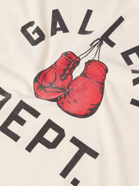 Gallery Dept.'s T-shirt is printed with boxing gloves artfully hung on its curved typography. The back has additional branding featuring the label's name in a contrasting style to the front. It's cut for a comfortable fit from cotton-jersey. Size & Fit - Fits true to size. Take your normal size - Designed for a relaxed fit - Mid-weight, stretchy fabric - Model is shown wearing a M - Model measures: chest 38"/ 96cm, height 6'0"/ 183cm Details & Care - Cream, red and black cotton-jersey - 100% cotton - Machine wash
