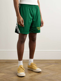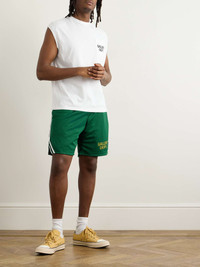 Venice Court Wide-Leg Logo-Print Webbing-Trimmed Mesh Shorts