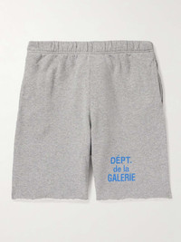 Gallery Dept. believes in celebrating imperfection. These fleece-back cotton-jersey shorts, for instance, have hems that are sliced to resemble cut-off sweats. They're finished with a French version of the brand's moniker Size & Fit - Model wears a size larger to achieve a looser fit - Relaxed-straight leg, mid-rise style - Internal drawstring at the waist - Mid-weight, slightly stretchy fabric - Model is shown wearing a M - Model measures: waist size 30, height 6'2"/ 188cm Details & Care - Grey and blue fleece-back cotton-jersey - 100% cotton - Machine wash