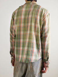 Marley Logo-Appliquéd Distressed Checked Cotton-Flannel Shirt Green