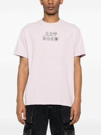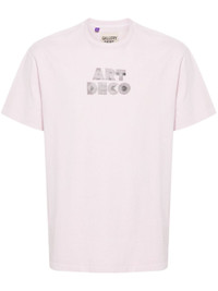 light purple cotton soft jersey glitter detailing to the rear art deco print to the front and rear logo print to the rear crew neck short sleeves straight hem unlined Size & Fit Model Measurements: Height: 1.87 m Bust/Chest: 94.0 cm Hips: 94.0 cm Waist: 71.0 cm Model wears size L Fabric and Care Designer Style ID: ADT1062 Designer Colour: LVND Composition: Cotton 100% Washing instructions: Dry Clean Only Made in United States