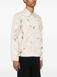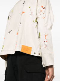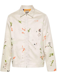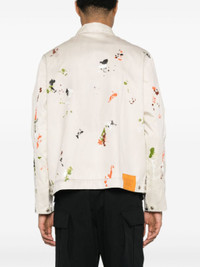 light beige/multicolour cotton twill weave paint splatter detail decorative-press-stud waist tabs logo patch to the rear logo-engraved silver-tone hardware classic collar long sleeves press-stud fastening cuffs two front jetted pockets internal patch pocket concealed front zip fastening straight hem silk lining Size & Fit Model Measurements: Height: 1.89 m Bust/Chest: 91.0 cm Hips: 92.0 cm Waist: 72.0 cm Model wears size L Fabric and Care Designer Style ID: MJKP60030 Designer Colour: AWHT BEIGE Composition: Outer: Cotton 100%; Lining: Silk 100% Washing instructions: Dry Clean Only Made in United States