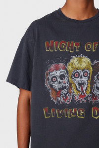 Relaxed 90's fit short sleeve featuring a front 'Night Of The Living Dead' graphic and GD ENGLISH logotype in gold glitter on the back. Model: 6'2" wearing size L Artistic Details - Relaxed 90's fit short sleeve. - Front graphic 'Night Of The Living Dead.' - GD ENGLISH logotype rendered in gold glitter on the back. Made in USA Material: 100% Cotton