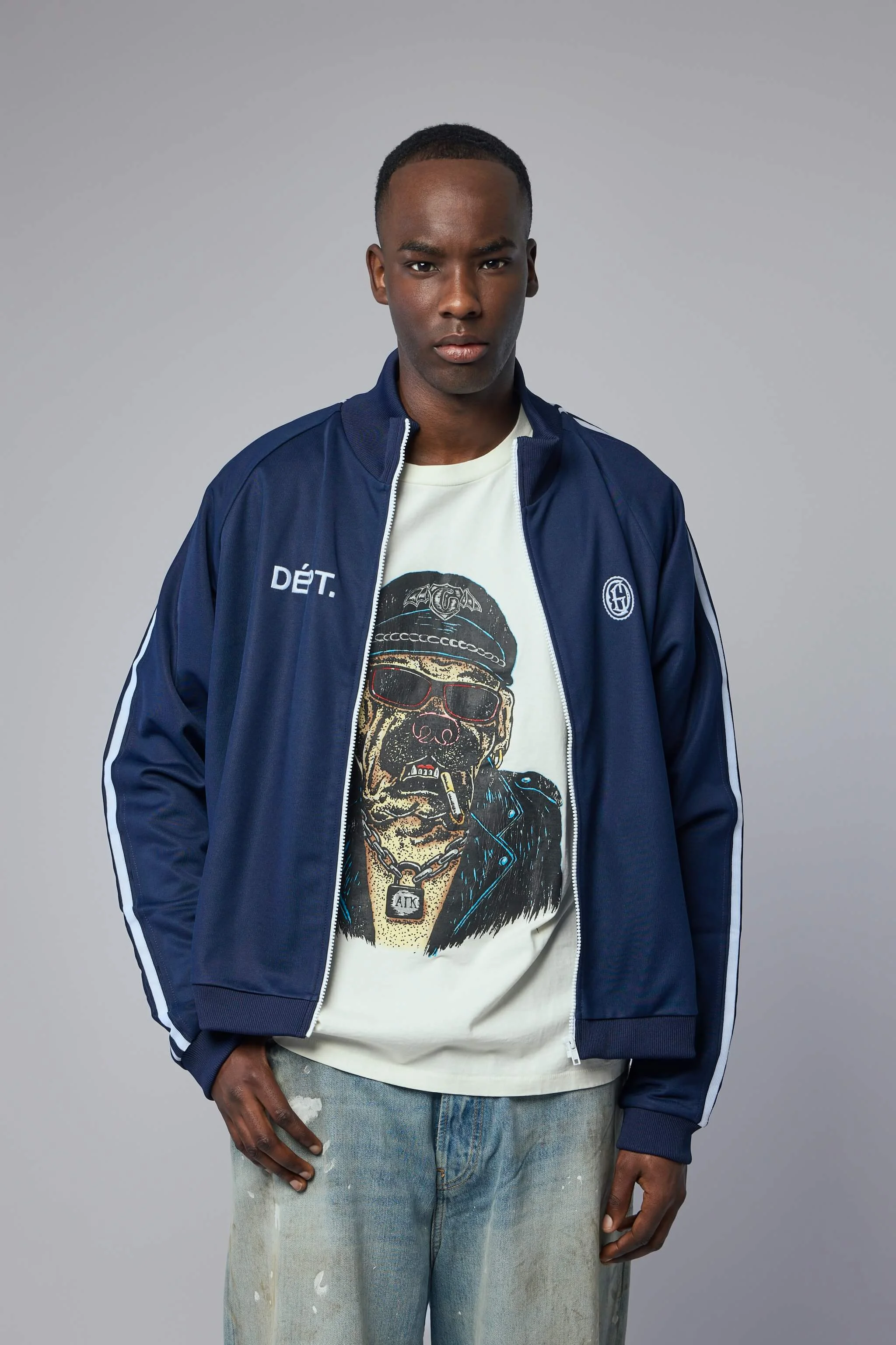 SKU: 154507 Brand style: OBD-10284 T-Shirt featuring a bold graphic of a dog in a cap and chain, displaying a unique artistic style. The short-sleeved design is casual and fashionable, ideal for everyday wear. - Short sleeves - Graphic dog artwork - Crew neck - Relaxed fit - Light fabric material Materials: 100% Cotton Color: Light Archival White The model is 1.89m (6.2ft) and wears a size L. The item fits as expected according to standard sizing. Order your usual size.