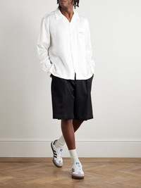 Omar Camp-Collar Logo-Embroidered Cotton-Satin Shirt White
