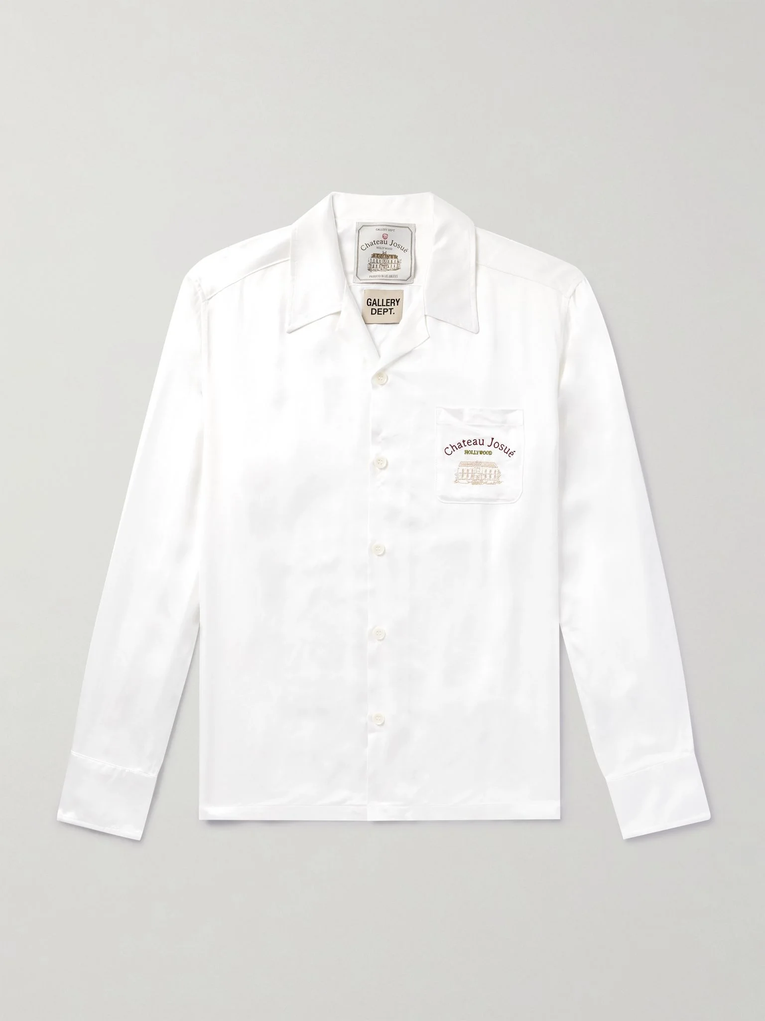 Gallery Dept.'s 'Omar' shirt looks like a souvenir you'd pick up from a luxury hotel. Modelled on pyjama styles, it's been made in LA from cotton-satin with a relaxed camp collar and 'Chateau Josue' embroidery at the chest patch pocket. Size & Fit - Fits true to size. Take your normal size - Designed for a relaxed fit - Mid-weight, non-stretchy fabric - Model is shown wearing a M - Model measures: chest 38"/ 96cm, height 6'0"/ 183cm Details & Care - White cotton-satin - Button fastenings - 100% cotton - Dry clean