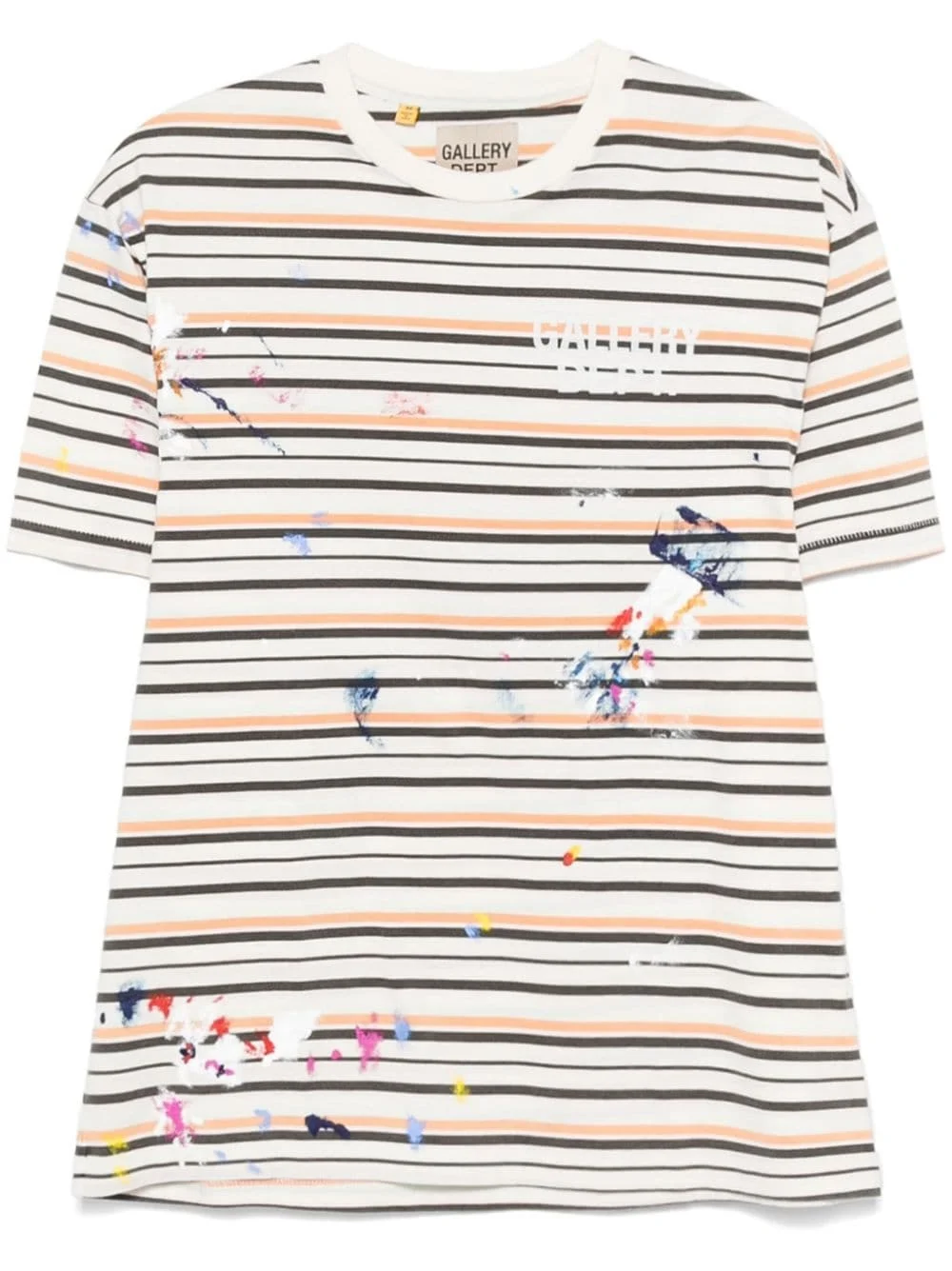 painterly-detailed T-shirt Highlights - White/multicolour - Cotton - Lightweight jersey - Crew neck - Horizontal stripe pattern - Painterly print - Logo print at the chest - Short sleeves - Straight hem Made in United States Composition Cotton 100% SIZE & FIT Model measurements Height 6 ft 2 in(1.87 m) Bust/Chest 36.22 in(92 cm) Hips 37 in(94 cm) Waist 27.95 in(71 cm) FittingInformation Designed for a relaxed fit, this piece allows for comfort and movement when worn Made from a midweight non-stretch fabric, this piece offers minimal elasticity when worn