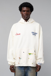 Oversized cotton-jersey hoodie with delicate embroidery, leather G-PATCHES and hand-painted details. Each piece is unique with a one-of-a-kind carefully curated patch assortment. Model: 6" wearing size L Artistic Details - Oversized hoodie. - Features 'Studio' chain-stitch embroidery and a printed GD logo on the front. - Large 'Art on Display' embroidery on the back. - Front kangaroo pocket. - Signature 'art on display' patch appliqued at the cuff. - Hand-painted by artisans at our Los Angeles maison. - Embellished with several leather G-PATCHES on both elbows with a one-of-a-kind carefully curated patch assortment. Each piece is unique and may vary from the photo. - Dry clean only. Made in USA Material: 100% Cotton