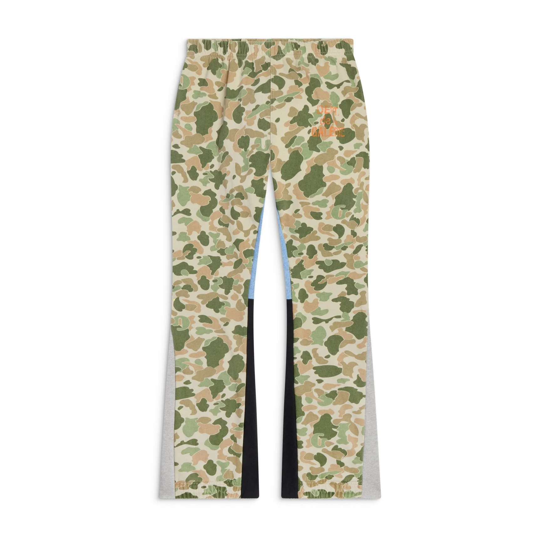 Tailored sweatpants with a prominent flare and wide leg opening. Drawstring waistband, side pockets, all-over camo print, and FRENCH logo at the hip. Artistic Details - Tailored sweatpant with a prominent flare and wider leg opening. - Drawstring waistband. - All-over camo print. - Side pockets. - Features our FRENCH logo typographic at the hip. Made in USA Material: 100% Cotton
