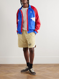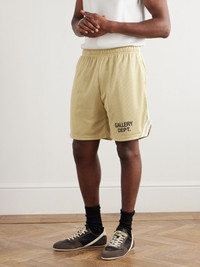 Venice Court Wide-Leg Logo-Print Webbing-Trimmed Mesh Shorts Beige