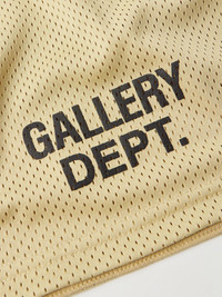 Gallery Dept. has amassed a strong celebrity following, with fans including LeBron James and Drake – and we'd wager the pair are fans of these retro-tinged basketball shorts. Cut to hit at the knee, they're made from mesh and trimmed with webbing stripes down the sides. They'd be great with high-tops or contrasted with loafers and socks. Size & Fit - Fits true to size. Take your normal size - Wide leg, mid-rise style - Drawstring at the waist - Lightweight, stretchy fabric - Model is shown wearing a M - Model measures: waist size 32, height 6'0"/ 183cm Details & Care - Beige and black mesh, beige and white webbing - 100% polyester - Machine wash