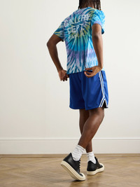 Venice Court Wide-Leg Logo-Print Webbing-Trimmed Mesh Shorts Blue
