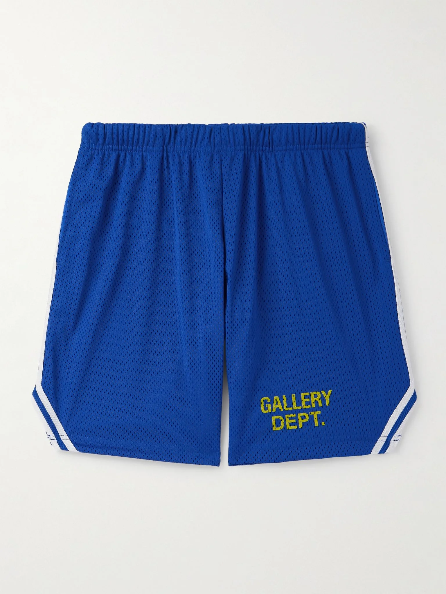 Gallery Dept. has amassed a strong celebrity following, with fans including LeBron James – and we'd wager he's partial to these retro-tinged basketball shorts. Cut to hit at the knee, they're made from mesh and trimmed with webbing stripes down the sides. They'd be great with high-tops or contrasted with loafers and socks. Size & Fit - Fits true to size. Take your normal size - Wide leg, mid-rise style - Drawstring at the waist - Lightweight, stretchy fabric - S/M/L sizing Details & Care - Royal-blue and yellow mesh, royal-blue and white webbing - 100% polyester - Machine wash