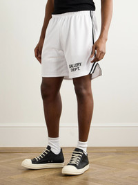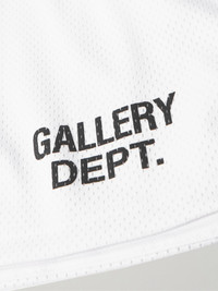 Gallery Dept. has amassed a strong celebrity following, with fans including LeBron James – and we'd wager he's partial to these retro-tinged basketball shorts. Cut to hit at the knee, they're made from mesh and trimmed with webbing stripes down the sides. They'd be great with high-tops or contrasted with loafers and socks. Size & Fit - Fits true to size. Take your normal size - Wide leg, mid-rise style - Drawstring at the waist - Lightweight, stretchy fabric - S/M/L sizing Details & Care - White and black mesh and webbing - 100% polyester - Machine wash