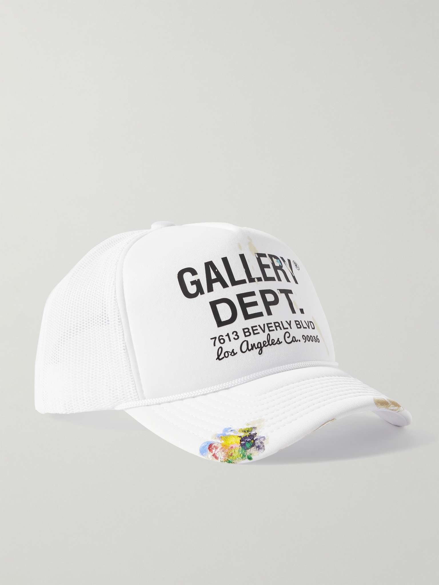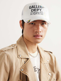 Gallery Dept.'s aptly named 'Workshop' cap is detailed with paint splatters and smudges on the brim, where they'd organically occur for an artist. It's made from canvas that's printed with the label's logo and has a breathable mesh back. Size & Fit - Crown Height: 16cm / 6.3in - Circumference: 61cm / 24in - Brim Width: 6.5cm / 2.6in Details & Care - Multicoloured canvas, white mesh - 55% polyester, 45% nylon - Hand wash