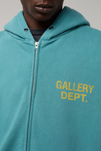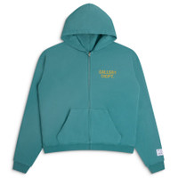 90's zip-up hoodie with an oversized fit and front pockets. Finished with GD ENGLISH logotype. Model: 6" wearing size L Artistic Details - 90's zip-up hoodie. - Oversized fit. - Front pockets. - GD ENGLISH logotype. - Features our patent wash process that uses unique fading techniques for each piece, inclusive of logos and graphics. Made in USA Material: 100% Cotton