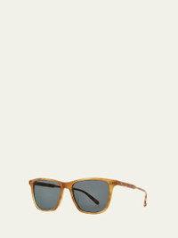 Garrett Leight "Hayes Sun" square sunglasses with acetate frames Eye/bridge/temple (in mm): 51-19-146 Polarized solid-color lenses Saddle nose bridge Thin arms; curved temple tips Acetate/metal 100% UVA/UVB protection Imported Online Inquiries: BGS21_NBLQX| Store Inquiries: #4668121