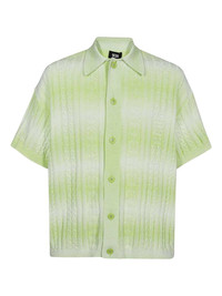 cable-knit shirt Highlights - Green and white - Cable knit - Button fastening - Polo collar - Short sleeves Made in Italy Composition Viscose 88%, Polyamide 12% Washing instructions Read Manufacturer Guidelines