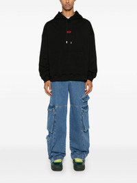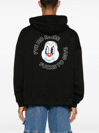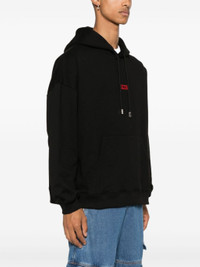 black cotton jersey texture clawn print to the back slouchy drawstring hood drop shoulder long sleeves embroidered logo to the front front pouch pocket slogan print to the rear French terry lining ribbed cuffs and hem Size & Fit Model Measurements: Height: 1.86 m Bust/Chest: 91.0 cm Hips: 93.0 cm Waist: 72.0 cm Model wears size L Fabric and Care Designer Style ID: A2CM1905JB4 Designer Colour: 99 NERO Composition: Cotton 100% Washing instructions: Machine Wash Made in Italy