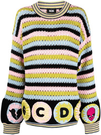 colour-block stripe knit jumper blue/multicolour cotton stripe print embroidered logo to the front round neck long sleeves straight hem Made in Italy Composition Cotton 100% Washing instructions Hand Wash