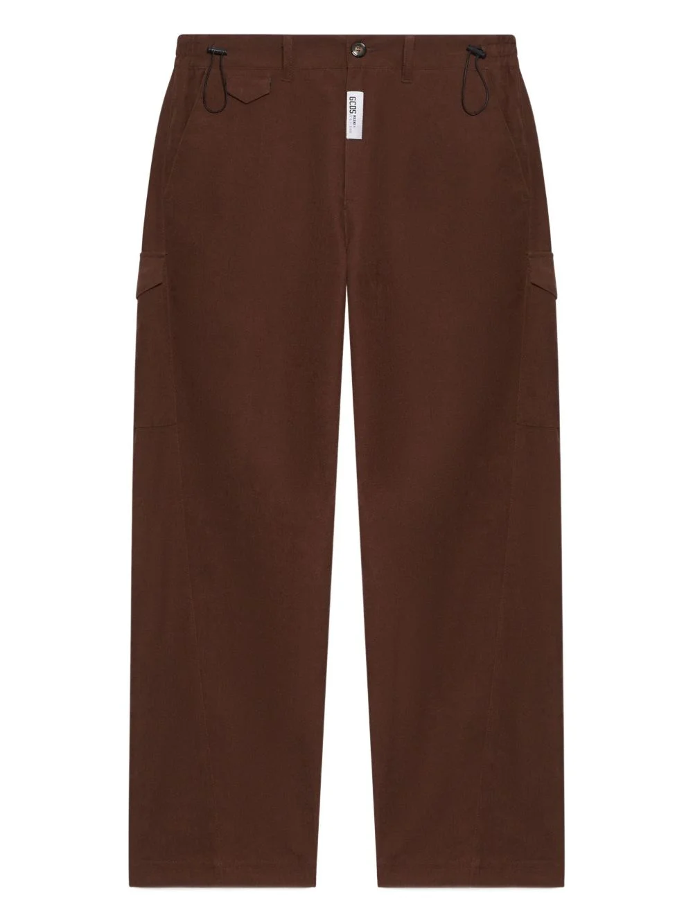 drawstring cotton pants Highlights - Brown - Cotton - Side cargo pocket - Rear flap pockets - Drawstring detail - Button fastening Made in Italy Composition Cotton 100%, Elastane 100%