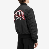 Capturing modern millennial sensibilities with expressive messaging and bold design, GCDS is the creation of brothers Giuliano and Giordano Calza. Crafted from a technical nylon, this bomber jacket is inspired by collegiate style. With handy side pockets and contrasting sporty ribbed trims, a varsity style arch logo is embroidered on the reverse. - 100% Nylon - Zip Closure - Side Pockets - Ribbed Trims