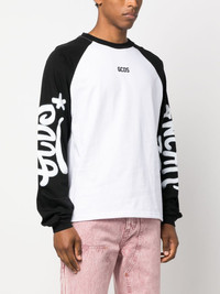 graffiti-logo long-sleeve T-shirt Highlights - Black/white - Cotton - Crew neck - Logo print to the front - Long raglan sleeves - Graffiti logo print - Ribbed cuffs - Straight hem Made in Italy Composition Cotton 100% SIZE & FIT Model measurements Height 6 ft 1 in(1.85 m) Bust/Chest 38.58 in(98 cm) Hips 37 in(94 cm) Waist 30.31 in(77 cm) FittingInformation Designed for a relaxed fit, this piece allows for comfort and movement when worn Made from a midweight non-stretch fabric, this piece offers minimal elasticity when worn This piece fits true to size – take your usual size Washing instructions Machine Wash